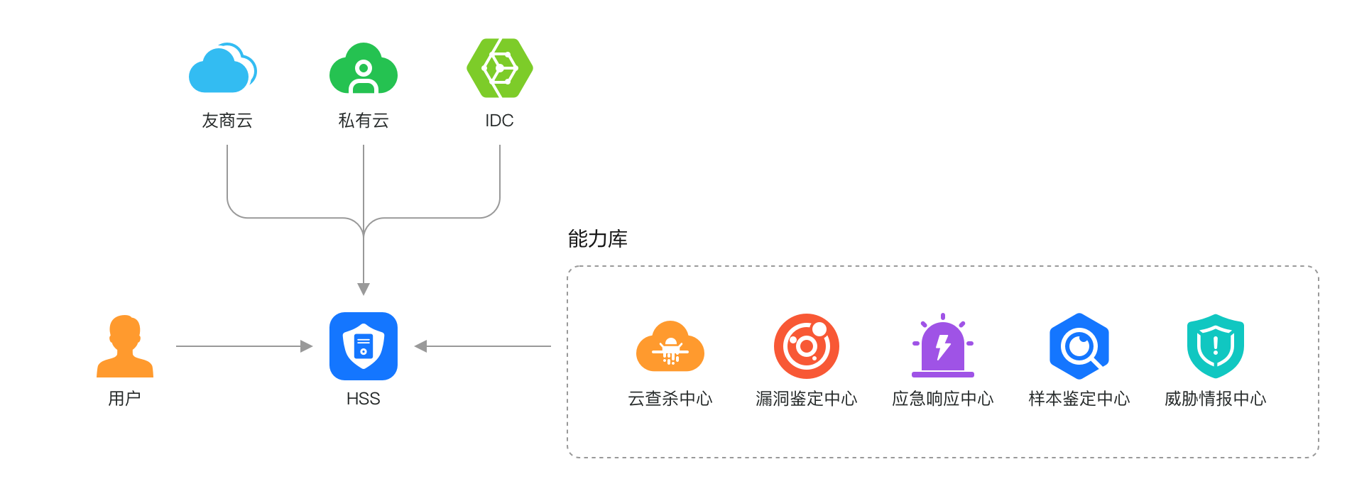 客户端支持华为云、混合云、私有云、数据中心、其他云跨多平台部署,管理员在华为云统一进行安全管理与运营。