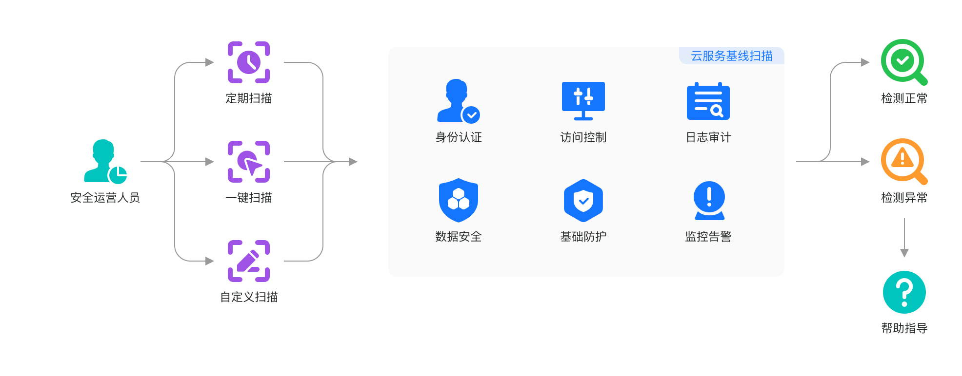 通过基线检查和加固、漏洞管理、防护策略覆盖,全面预防各类脆弱性